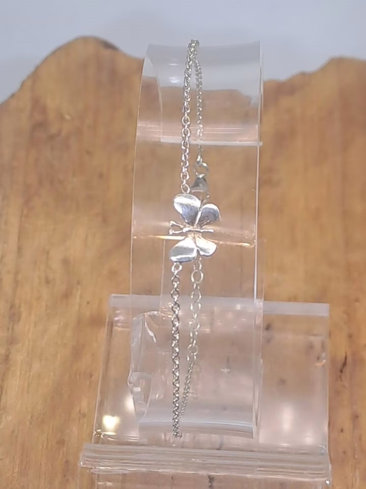 Delicada, ligera y ajustable, esta pulsera de mariposa está hecha completamente en plata de ley 925 maciza. Su diseño sutil y elegante la convierte en una joya perfecta para el día a día, aportando un toque de feminidad sin renunciar a la comodidad. La mariposa, símbolo de libertad y belleza, destaca en esta pieza con un acabado impecable y duradero.